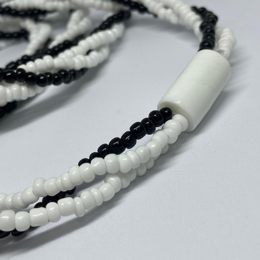 Feita à mão pelas artesãs da Zé Maria Distribuidora, esta guia de miçangas representa a força da fé e o equilíbrio entre luz e movimento espiritual. Composta por dois fios brancos e um fio preto, ela carrega significados profundos dentro das tradições afro-brasileiras.