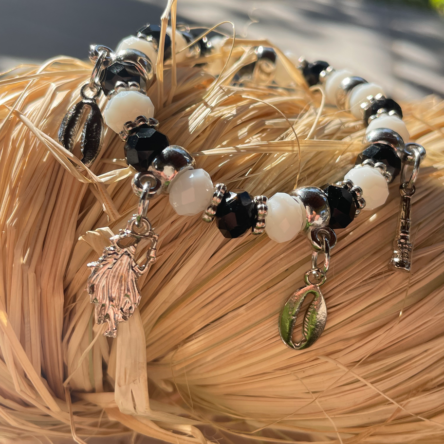 Confeccionada com devoção e respeito à força de Omolu, esta pulseira é mais que um acessório: é um amuleto de proteção, cura e conexão espiritual. Os pingentes representativos do Orixá, evocam sua presença silenciosa e poderosa, trazendo equilíbrio e acolhimento para quem a usa.